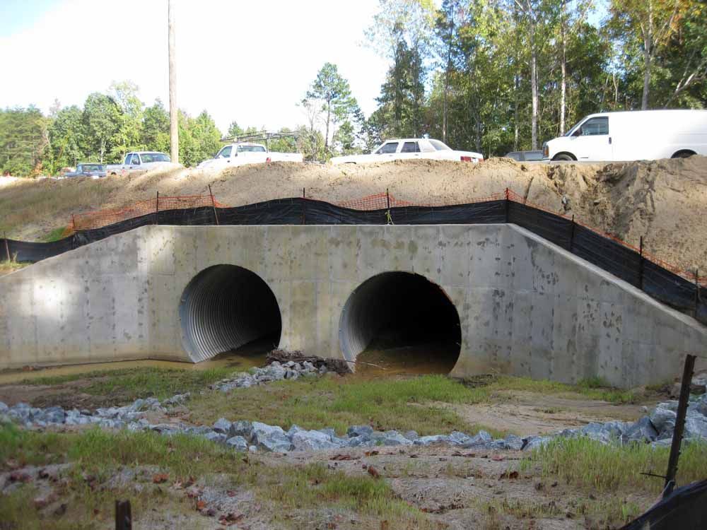 Investigation of the Crowder's Mountain Dam located in Gaston County, North Carolina. The objective of the project was to identify obvious conditions that may lead to structural failure of the existing spillway and assess whether immediate repair was warranted. A down-hole camera was utilized to inspect the principal spillway and to determine replacement and repair of the existing spillway barrel, pictured lower right. The results of the investigation concluded that slip lining the barrel of the principal spillway was the most feasible alternative. As part of our design we also prepared an Emergency Action Plan and an Operations Maintenance Plan.
